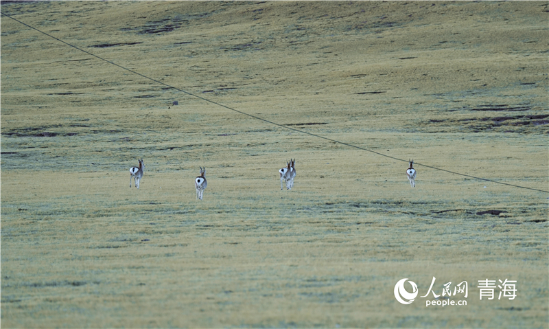 成群藏原羚奔跑。人民网记者 杨启红 摄