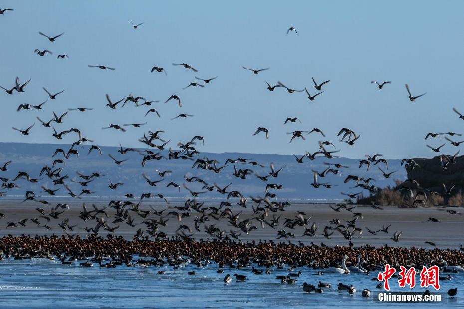 三九寒天,170余只天鹅飞抵柴达木盆地的青海省海西州青海可鲁克湖-托素湖省级自然保护区,同时还有熊猫鸭、鹊鸭、普通秋沙鸭、绿头鸭和潜鸭等。它们在这里嬉戏、觅食,给保护区增添了一道亮丽独特的风景线。