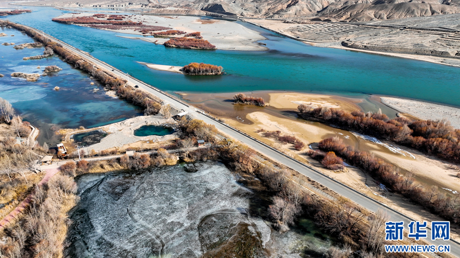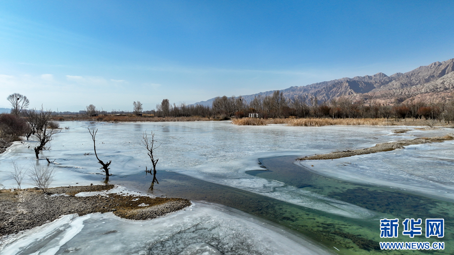 冬日时节,位于黄河上游的青海省海南藏族自治州贵德县境内的千姿湖湿地公园风景如画。