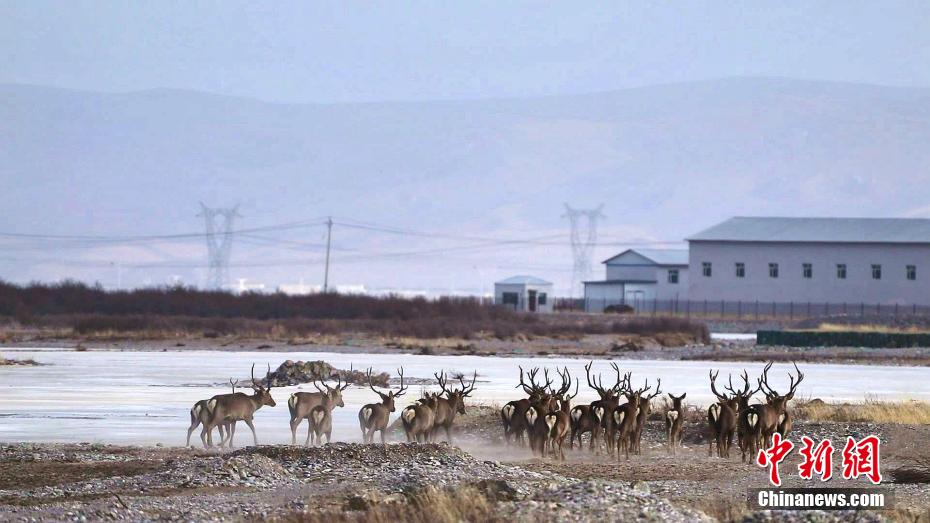 图为野生马鹿种群在县城周边结伴而行。蔡海勇 摄