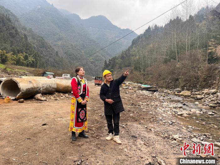 资料图为五星村书记余绍容(左一)了解村中工程施工进展。受访者余绍容供图