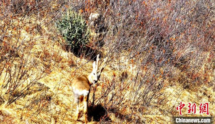 图为狍鹿现身长江源上游主要水源地。曹民锴 摄
