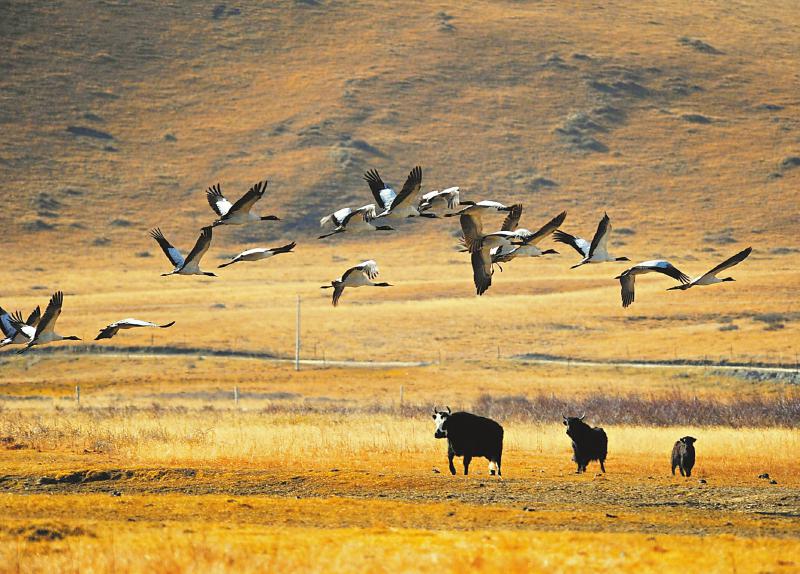 鹤舞月亮湾 摄影人连续10年用镜头记录红原黑颈鹤