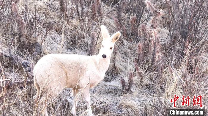 图为极为罕见的白色马麝。(青海省班玛县融媒体中心 供图)