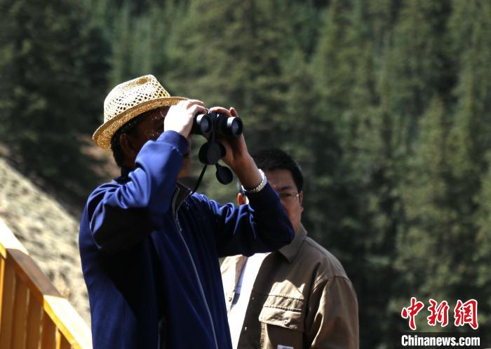 图为游客拿望远镜欣赏自然风光。张海雯 摄
