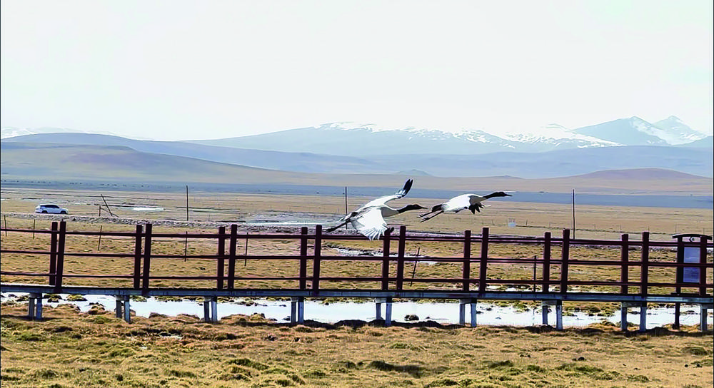 拍到黑颈鹤产蛋的影像资料后,扎江第一时间将视频发到村“两委”的工作群里,村“两委”很快做出反应。先是在黑颈鹤巢卵区周围采取保护措施,安装红外摄像机,然后划出黑颈鹤安全活动区,避免野狼、狐狸等动物的侵害。同时,加强生态管护人员巡逻力度,为黑颈鹤的生存和繁衍保驾护航。