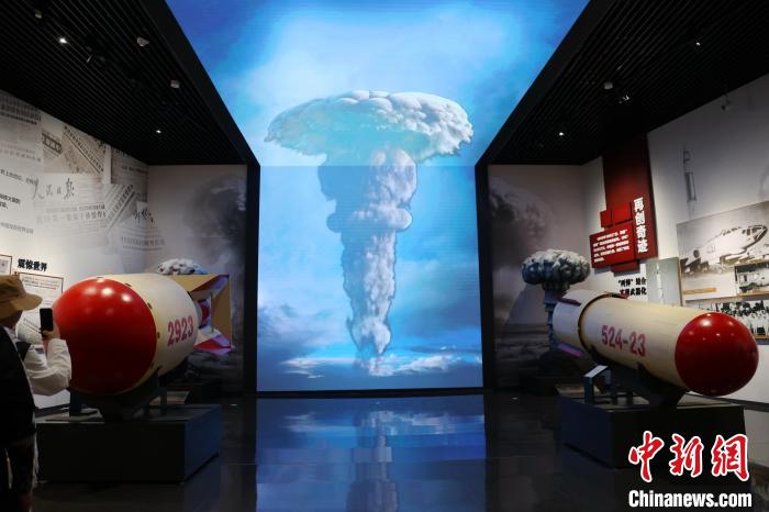 图为青海原子城纪念馆内展陈的中国第一颗机载氢弹模型(右)。张添福 摄