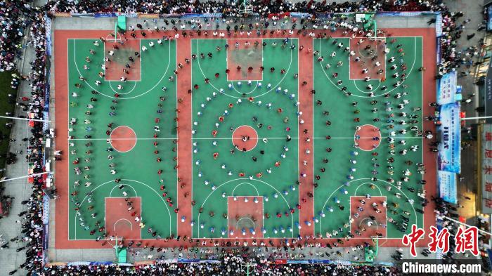 图为“动感卓尼”锅庄舞演出现场。(无人机照片)中新社记者 九美旦增 摄