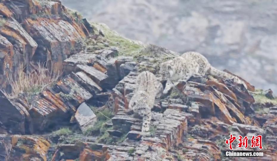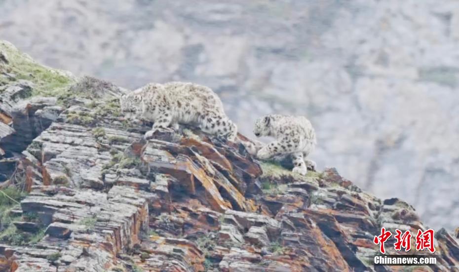 图为雪山上豹妈带娃“飞檐走壁”。宋宇 摄
