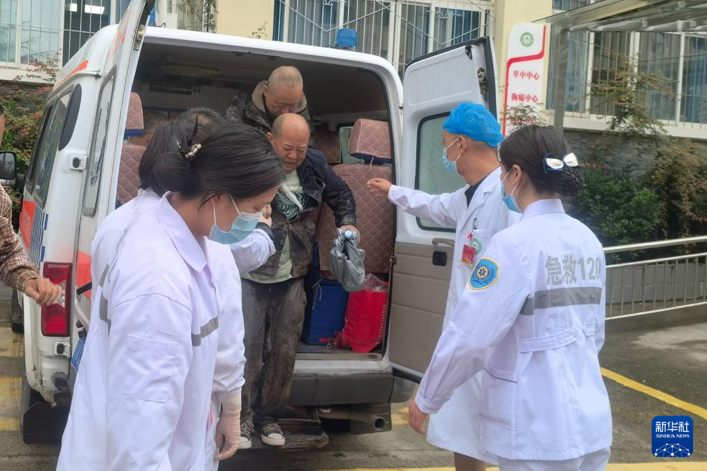 8月3日,伤员被送往康定市人民医院接受治疗。新华社发
