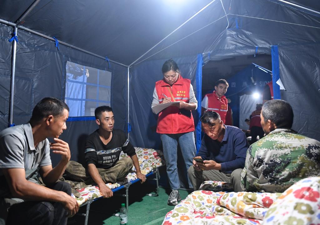 记者3日晚间在日地村18公里外的郎鼓村安置点看到,经过紧急抢通电源,16顶应急救灾帐篷里已接通了明亮的电灯。折叠床上铺着整齐的被褥,一些老人在床头盘腿而坐,当地干部和志愿者在有序开展各种服务。