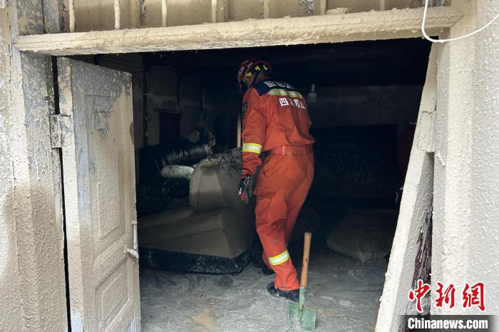 挖掘机、破拆机在泥石流堆积体上作业,疏导洪水,破拆石块。被泥沙灌注的民房附近,消防救援人员携带搜救犬,在村民指引下展开搜救。4日下午的四川省甘孜州康定市日地村,抢险救援仍在紧张进行。