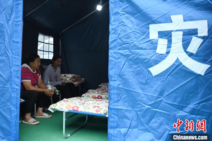 8月3日,康定姑咱镇郎鼓村临时安置点,受灾转移村民住进帐篷。中新社记者 刘忠俊 摄