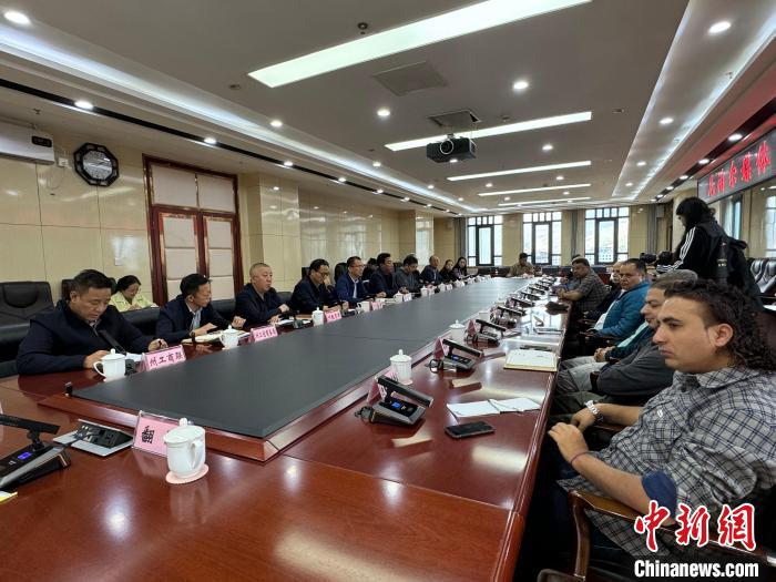 图为尼泊尔媒体考察团一行与玉树州政府座谈交流。潘雨洁 摄