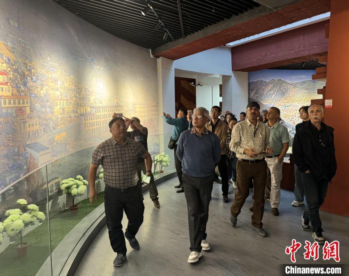 图为尼泊尔媒体考察团一行参访玉树市抗震救灾纪念馆。潘雨洁 摄