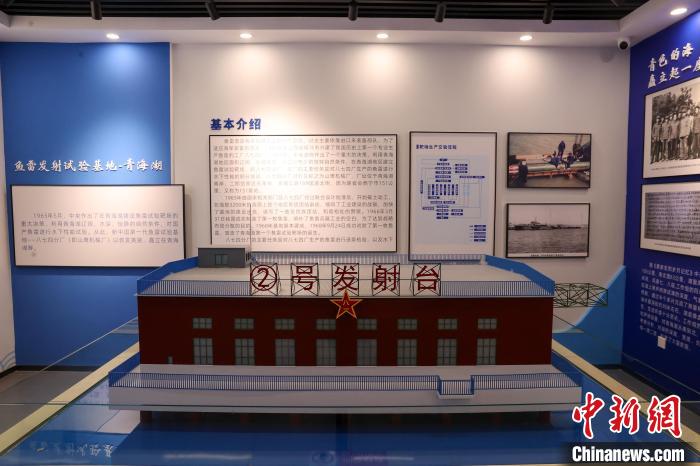 9月25日,在青海省海南藏族自治州共和县,青海湖二郎剑景区内的中国第一代鱼雷试验基地纪念馆,馆内摆放的等比例发射台模型。1968年,名为“山鹰机械厂”的鱼雷试验靶场在青海湖南岸建立,这里也曾是我国海军的鱼雷发射试验基地。如今,湖面上的基地遗址已成为青海湖的爱国主义教育基地。中新社记者 薛蒂 摄