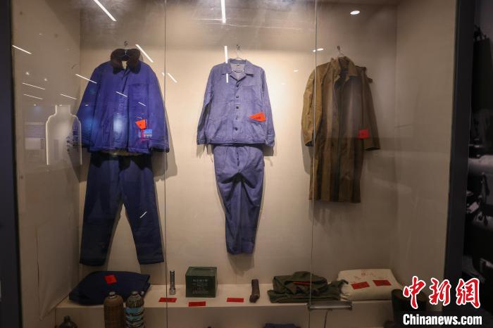 9月25日,在青海省海南藏族自治州共和县,青海湖二郎剑景区内的中国第一代鱼雷试验基地纪念馆,馆内展示各类工作服。1968年,名为“山鹰机械厂”的鱼雷试验靶场在青海湖南岸建立,这里也曾是我国海军的鱼雷发射试验基地。如今,湖面上的基地遗址已成为青海湖的爱国主义教育基地。中新社记者 薛蒂 摄