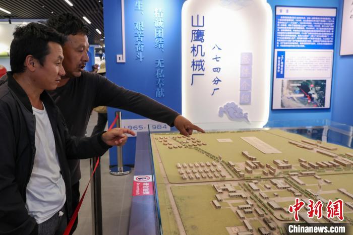 9月25日,在青海省海南藏族自治州共和县,青海湖二郎剑景区内的中国第一代鱼雷试验基地纪念馆,游客相互交流“山鹰机械厂”的地理环境。1968年,名为“山鹰机械厂”的鱼雷试验靶场在青海湖南岸建立,这里也曾是我国海军的鱼雷发射试验基地。如今,湖面上的基地遗址已成为青海湖的爱国主义教育基地。中新社记者 薛蒂 摄
