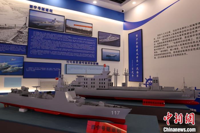 9月25日,在青海省海南藏族自治州共和县,青海湖二郎剑景区内的中国第一代鱼雷试验基地纪念馆,馆内展示各类海军舰艇模型。1968年,名为“山鹰机械厂”的鱼雷试验靶场在青海湖南岸建立,这里也曾是我国海军的鱼雷发射试验基地。如今,湖面上的基地遗址已成为青海湖的爱国主义教育基地。中新社记者 薛蒂 摄