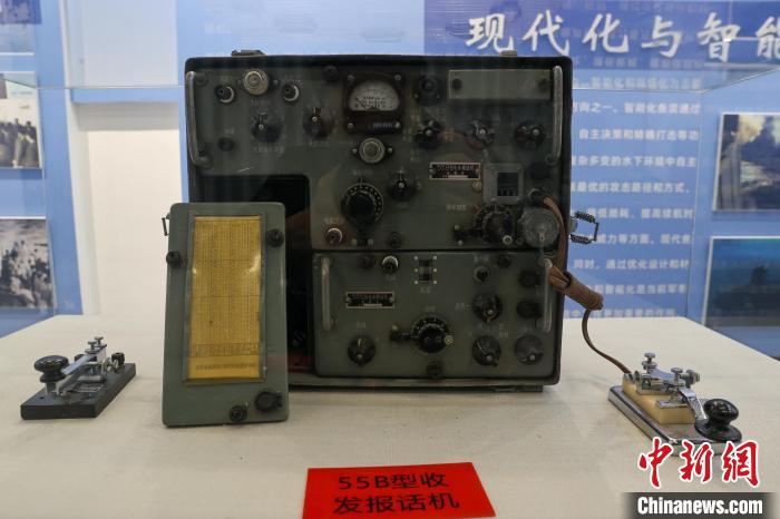 9月25日,在青海省海南藏族自治州共和县,青海湖二郎剑景区内的中国第一代鱼雷试验基地纪念馆,馆内展示55B型收发报话机。1968年,名为“山鹰机械厂”的鱼雷试验靶场在青海湖南岸建立,这里也曾是我国海军的鱼雷发射试验基地。如今,湖面上的基地遗址已成为青海湖的爱国主义教育基地。中新社记者 薛蒂 摄