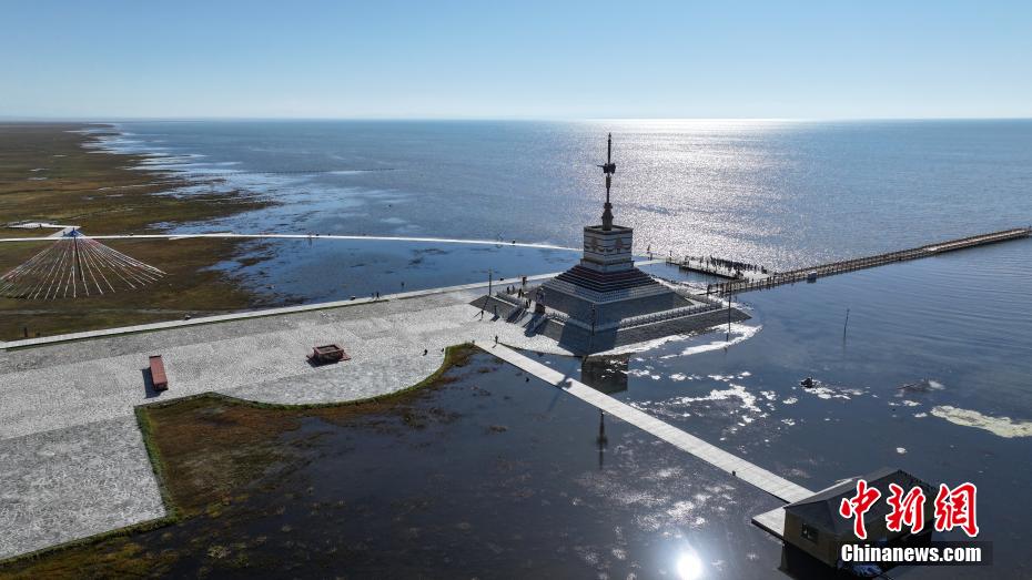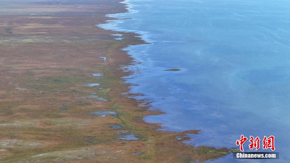 9月26日,航拍青海省海北藏族自治州刚察县仙女湾秋日风光。仙女湾位于青海湖北岸,是青海湖重要高原草甸湿地,生物多样性丰富。图为航拍青海省海北藏族自治州刚察县仙女湾。中新社记者 薛蒂 摄