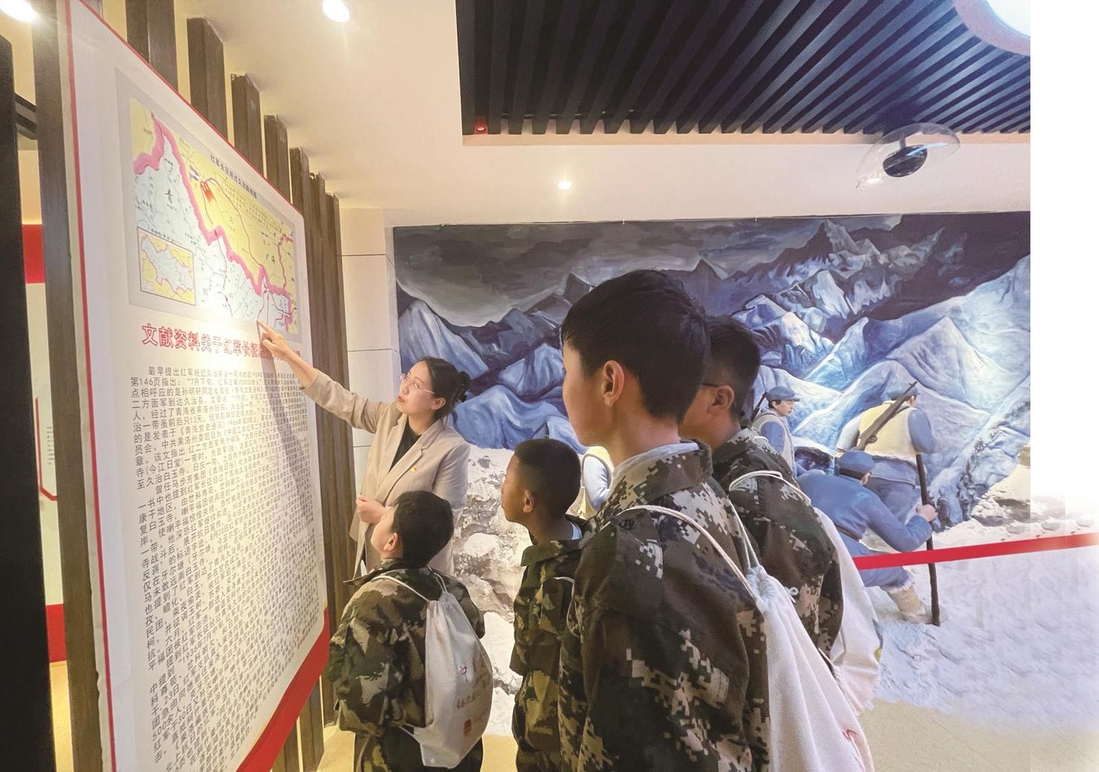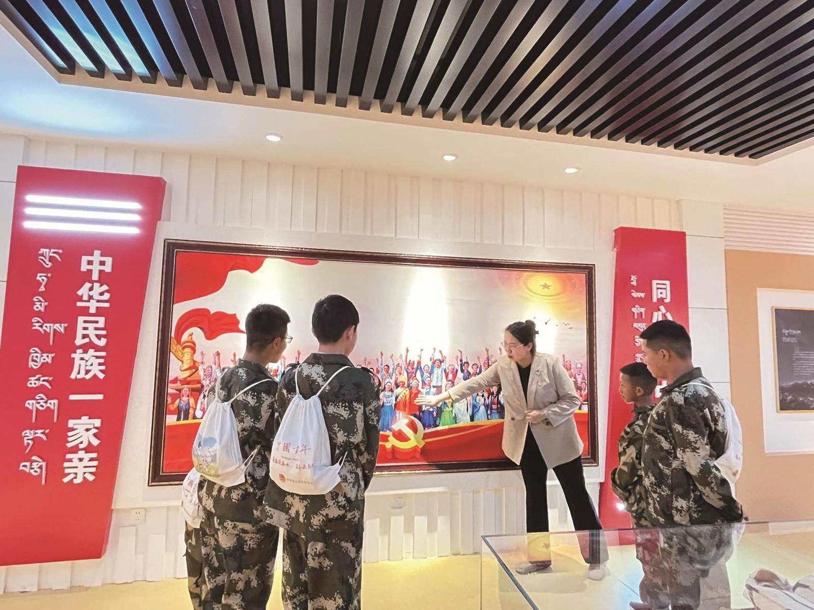 “小朋友别着急,进入下一个展厅后我就会告诉你了。”索南卓玛一边耐心解答着学生们的问题,一边引领大家走进铸牢中华民族共同体意识教育厅,她指着展厅内的一幅旧照片说,这位是久治县和平解放初期的部落头人康万庆先生,他积极与当时的果洛工作团沟通联系,是首位接触共产主义思想的爱国进步人士,对久治和平解放、顺利建政起到了非常重要的作用……