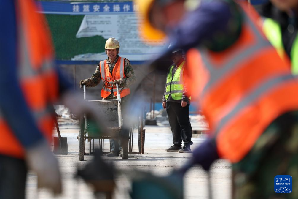 10月12日,中铁二十局的建设者在兰合铁路本池沟大桥上施工作业。新华社记者 陈斌 摄
