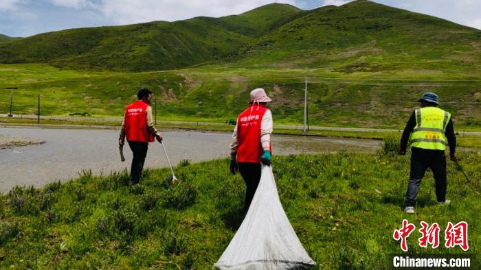 图为果洛州生态管护员捡拾垃圾。(资料图) 果洛州委宣传部 供图
