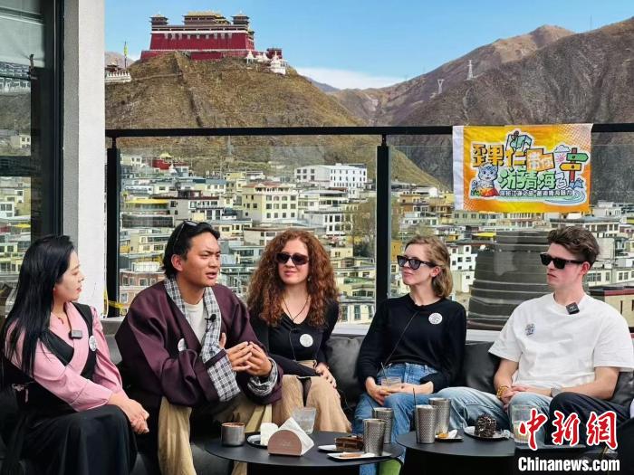 图为外国嘉宾与玉树当地文旅“推荐官”交流分享。马铭言 摄