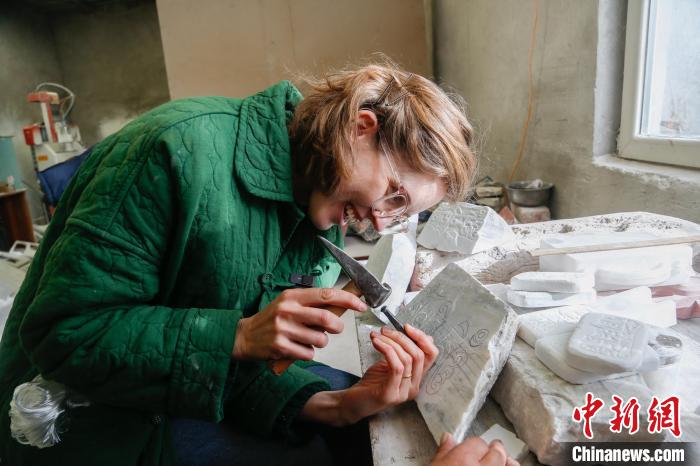 图为外国嘉宾体验嘛呢石刻技艺。马铭言 摄