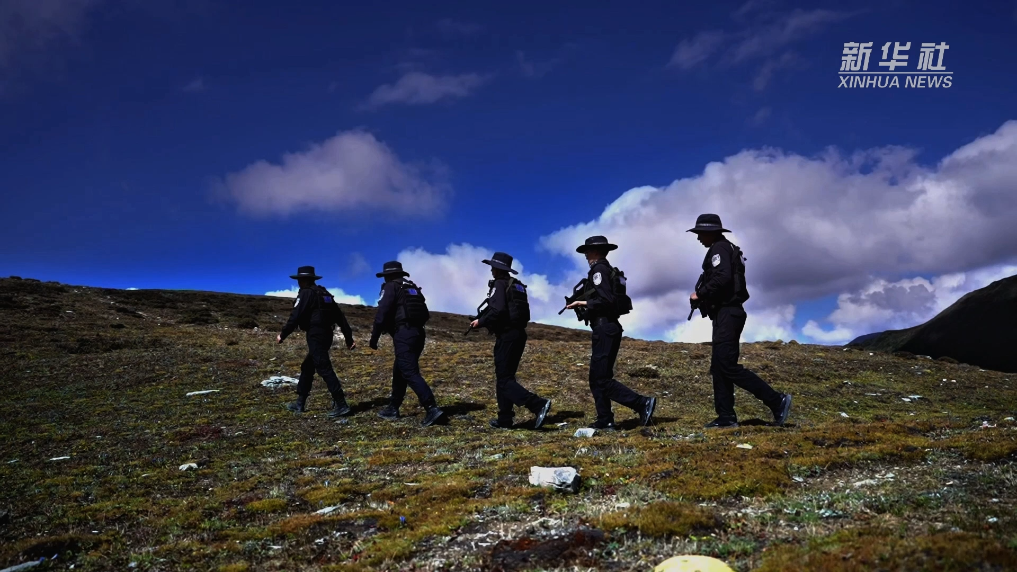 云南省迪庆藏族自治州香格里拉市公安局东旺派出所民警鲁茸取扎和战友们一起常年守候在海拔4800米的雪峰上,在东旺乡开展“伴随式”驻山执勤,为群众提供紧急救助、交通保障和纠纷调解等服务,守护辖区群众安全。