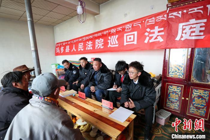 资料图为玛多县人民法院巡回法庭下乡为牧民提供司法服务。薛蒂 摄。