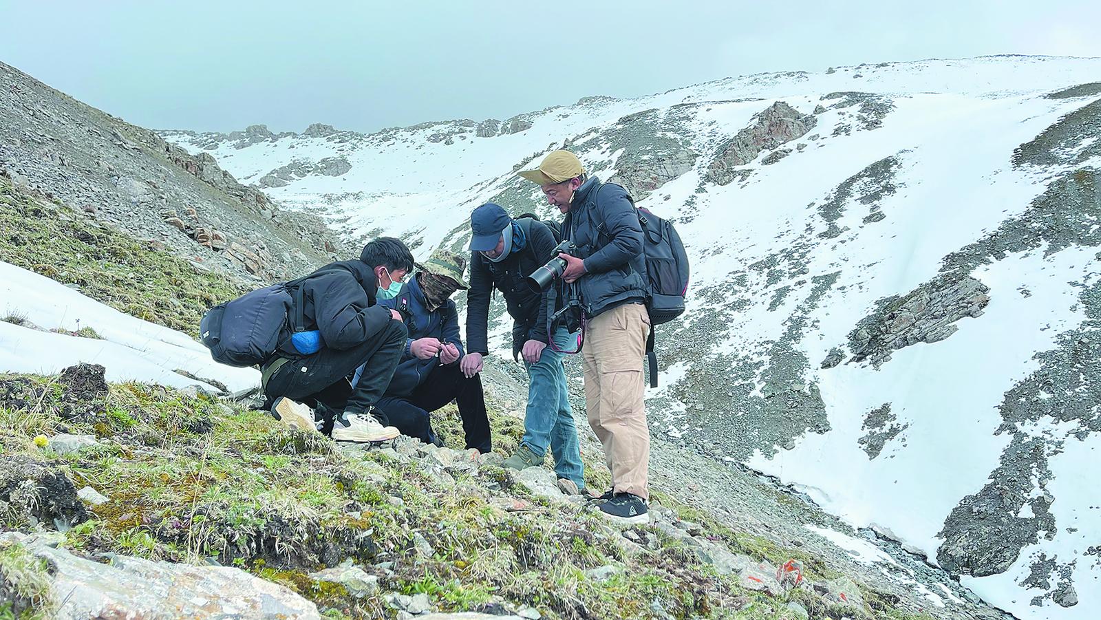 兴海县藏医院的医生到山上寻找珍稀药材,采集种子,对濒危品种进行GPS定位。迎着凛冽风雪翻越雪山、沿着陡峭山腰穿过流石滩、伴着潺潺水声走在这漫漫寻药路上……看到过“离天空最近的花草”,也惊叹过一株小小植物的生命力,当他们趴在冰冷的土地上,拨开纷扰的杂草,见到难寻的植株时,周拉太一行人心里就像发现了宝藏一样喜悦。