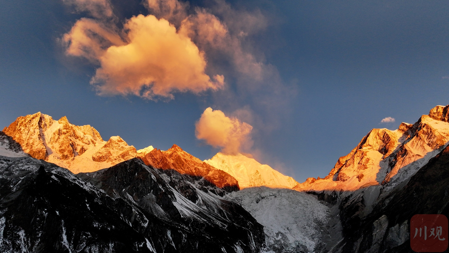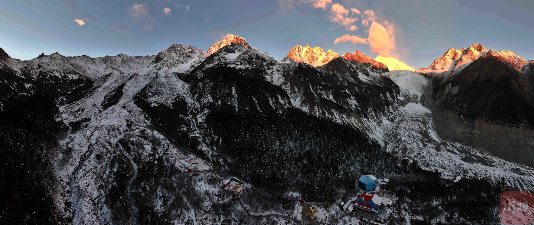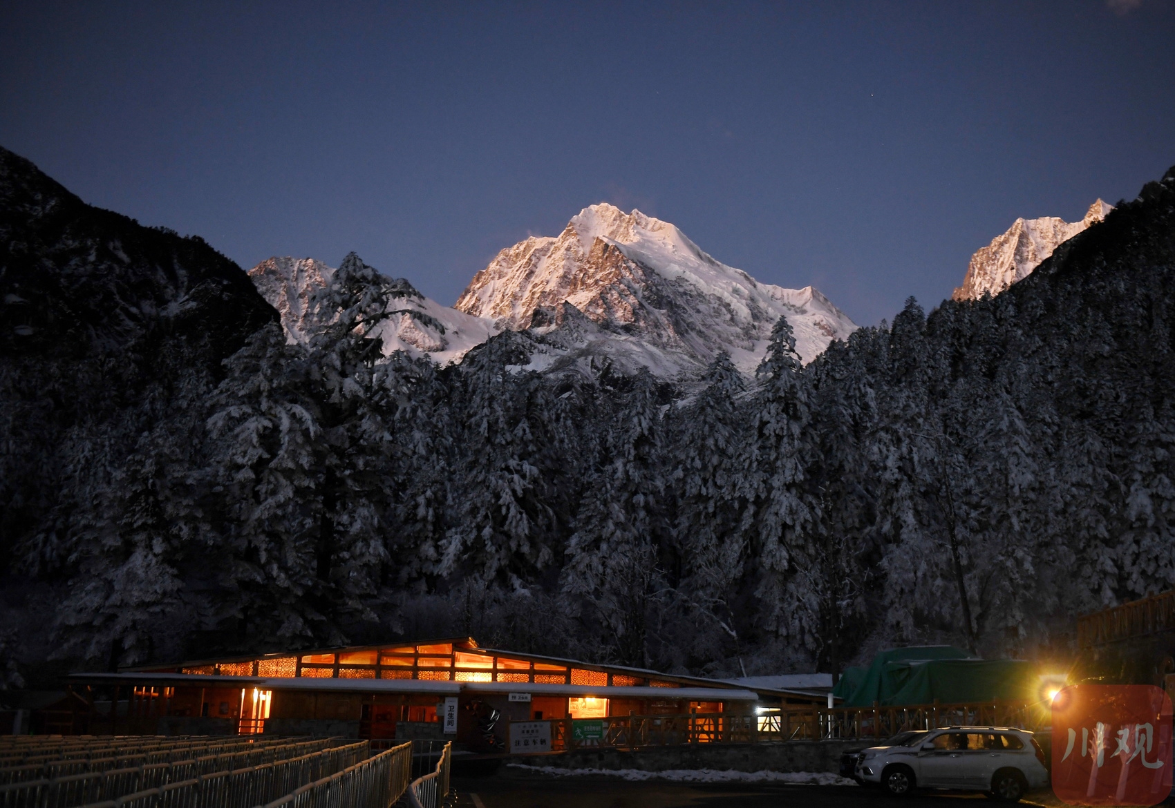 2025年1月1日清晨,在位于四川省甘孜州的海螺沟景区拍到的贡嘎雪山新年第一缕阳光。四川在线记者李向雨摄影报道