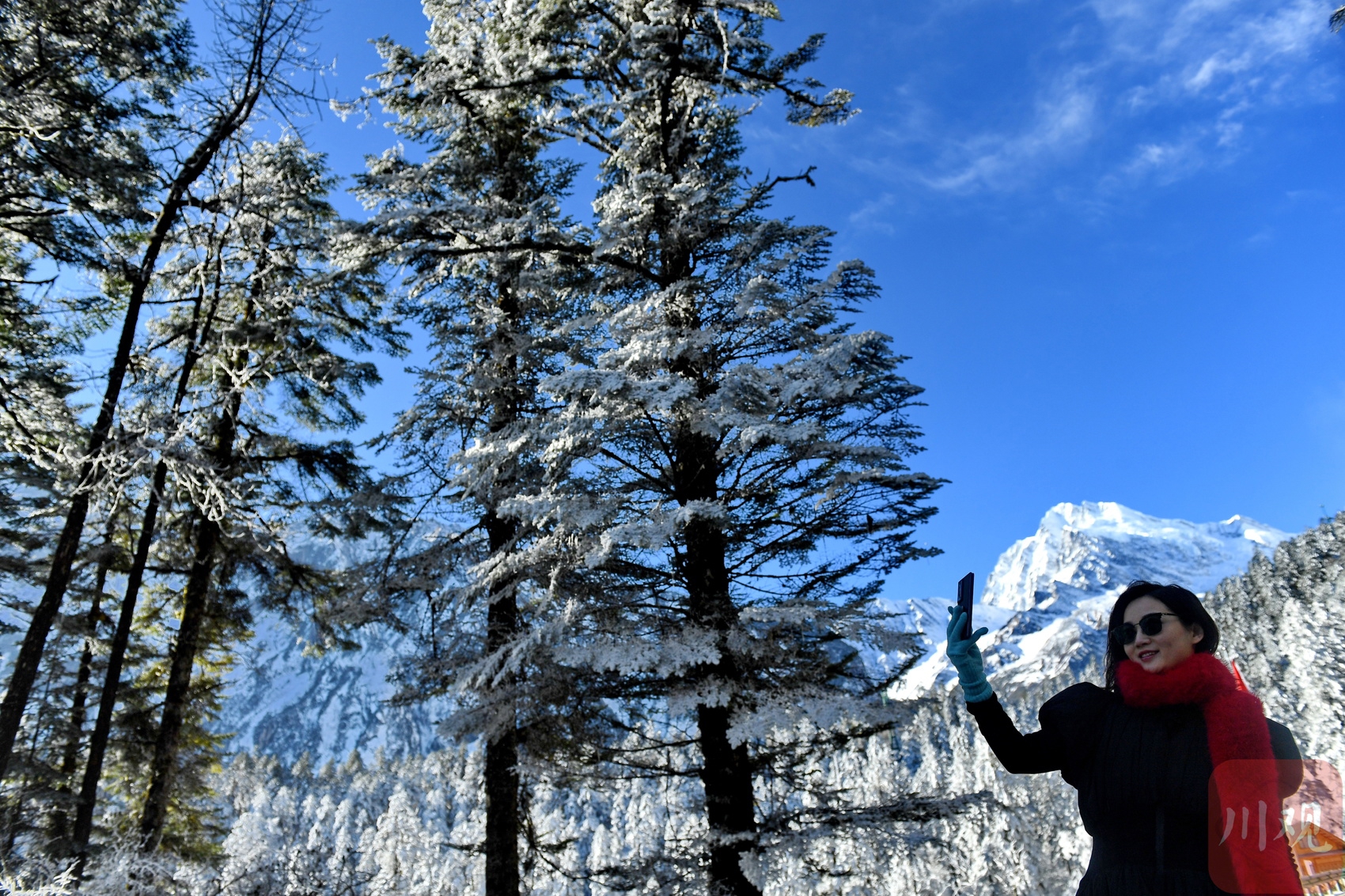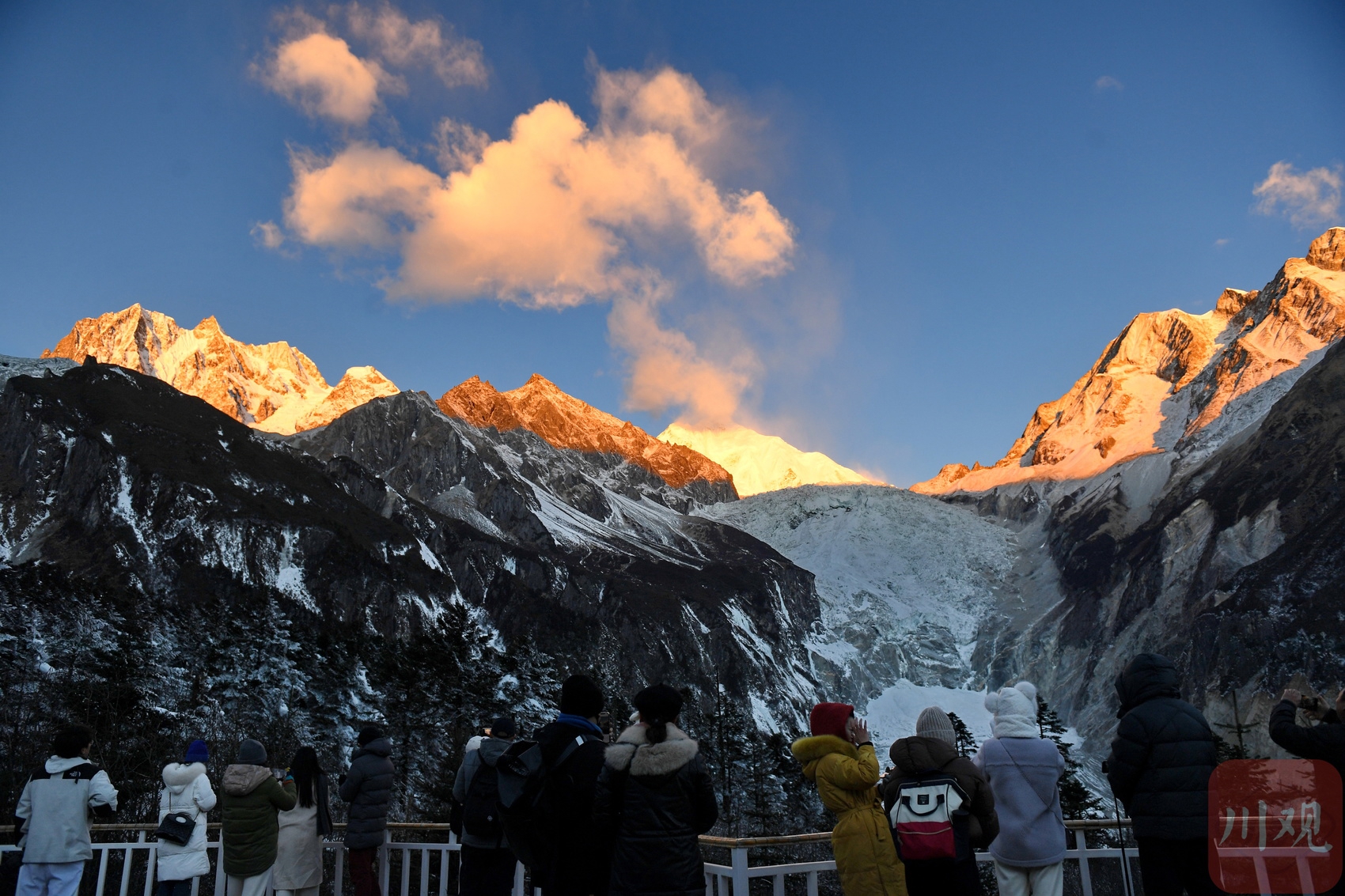2025年1月1日清晨,游客在位于四川省甘孜州的海螺沟景区欣赏风光。