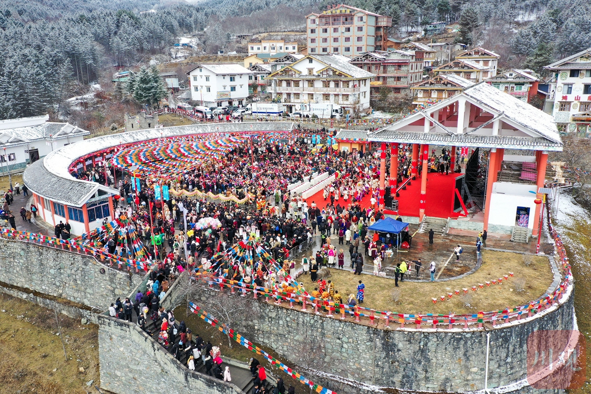 2025年2月6日,农历正月初九,雅安宝兴硗碛藏寨迎来藏历木蛇年传统民俗文化活动“上九节”。C视觉 赵玮 摄