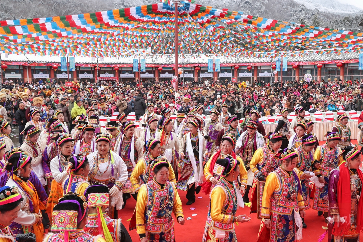 2025年2月6日,农历正月初九,雅安宝兴硗碛藏寨迎来藏历木蛇年传统民俗文化活动“上九节”。C视觉 袁梅 摄