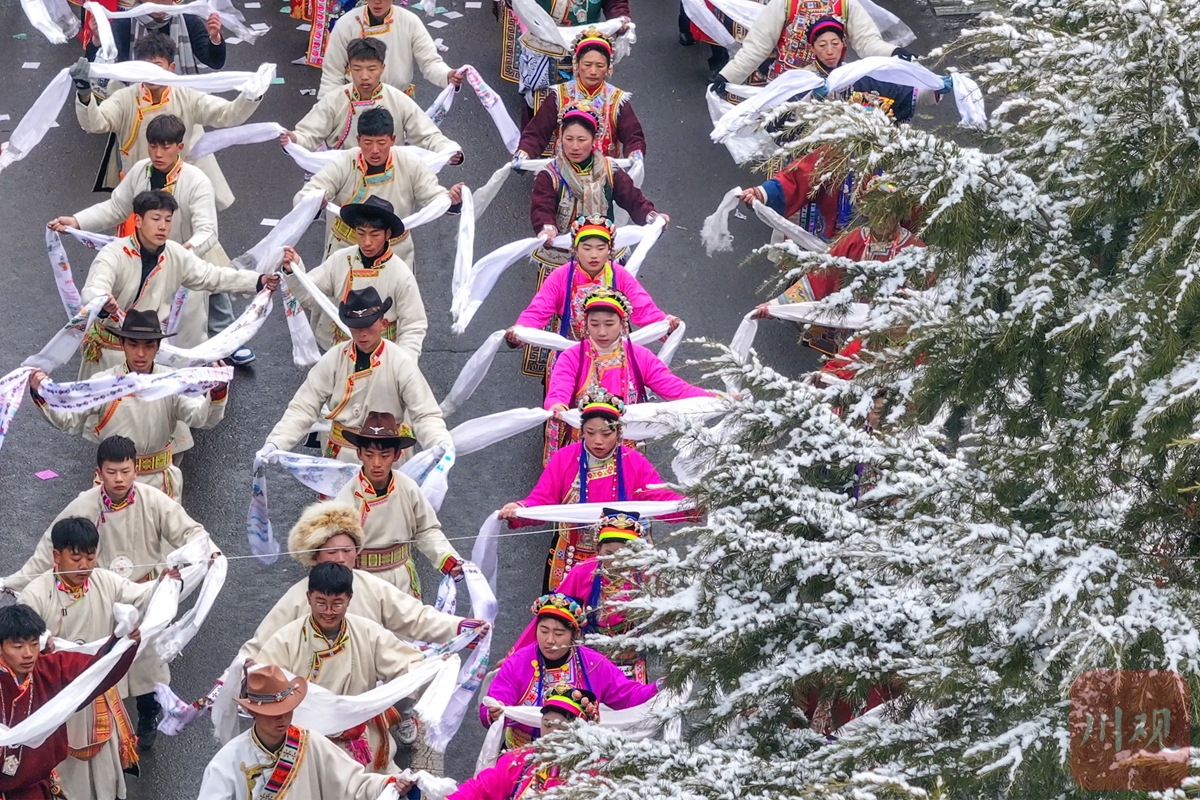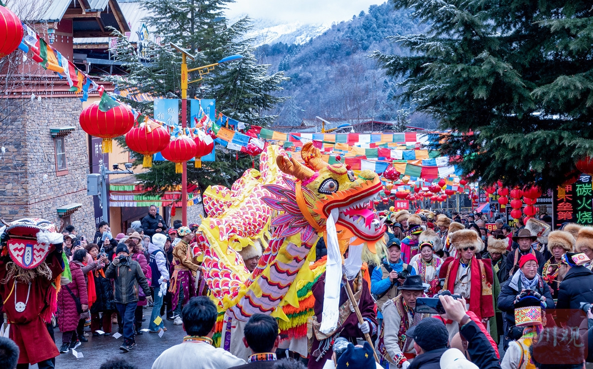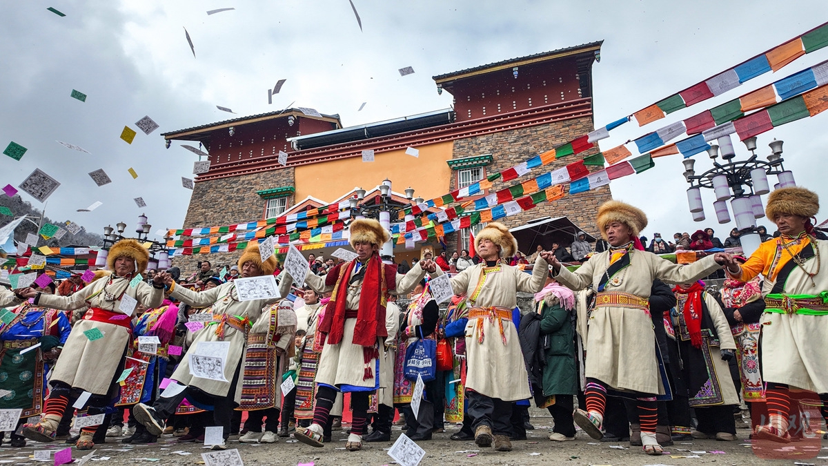 2025年2月6日,农历正月初九,雅安宝兴硗碛藏寨迎来藏历木蛇年传统民俗文化活动“上九节”。这一天,夹金山藏族群众穿着节日的盛装,表演“硗碛多声部民歌”“硗碛上九节”“硗碛锅庄”等国家级、省级非物质文化遗产节目,把节日的盛况推向高潮。