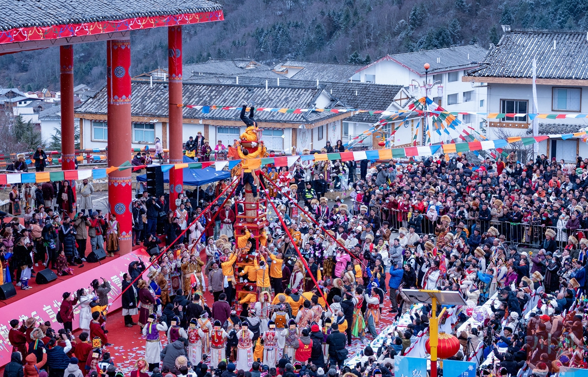 2025年2月6日,农历正月初九,雅安宝兴硗碛藏寨迎来藏历木蛇年传统民俗文化活动“上九节”。C视觉 杨本江 摄