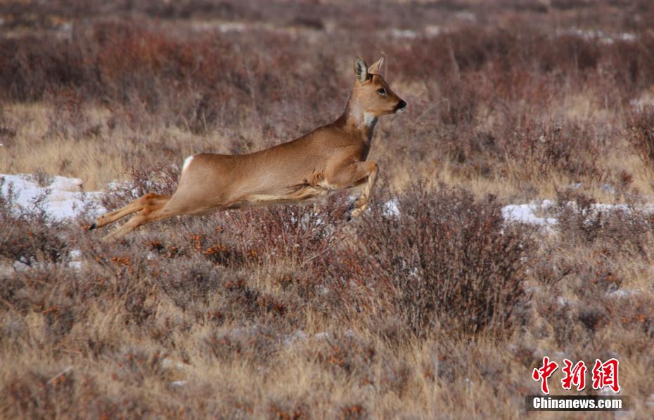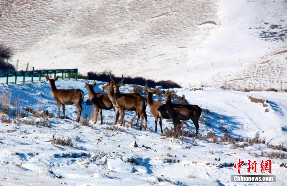 春日里,位于甘肃省武威市天祝藏族自治县境内马牙雪山脚下的抓喜秀龙草原,生机勃勃,国家二级保护动物马鹿、狍鹿时而奔跑,时而跳跃,成群结队“出游”,与覆雪的草地相映成趣,构成了一幅美丽的生态画卷。