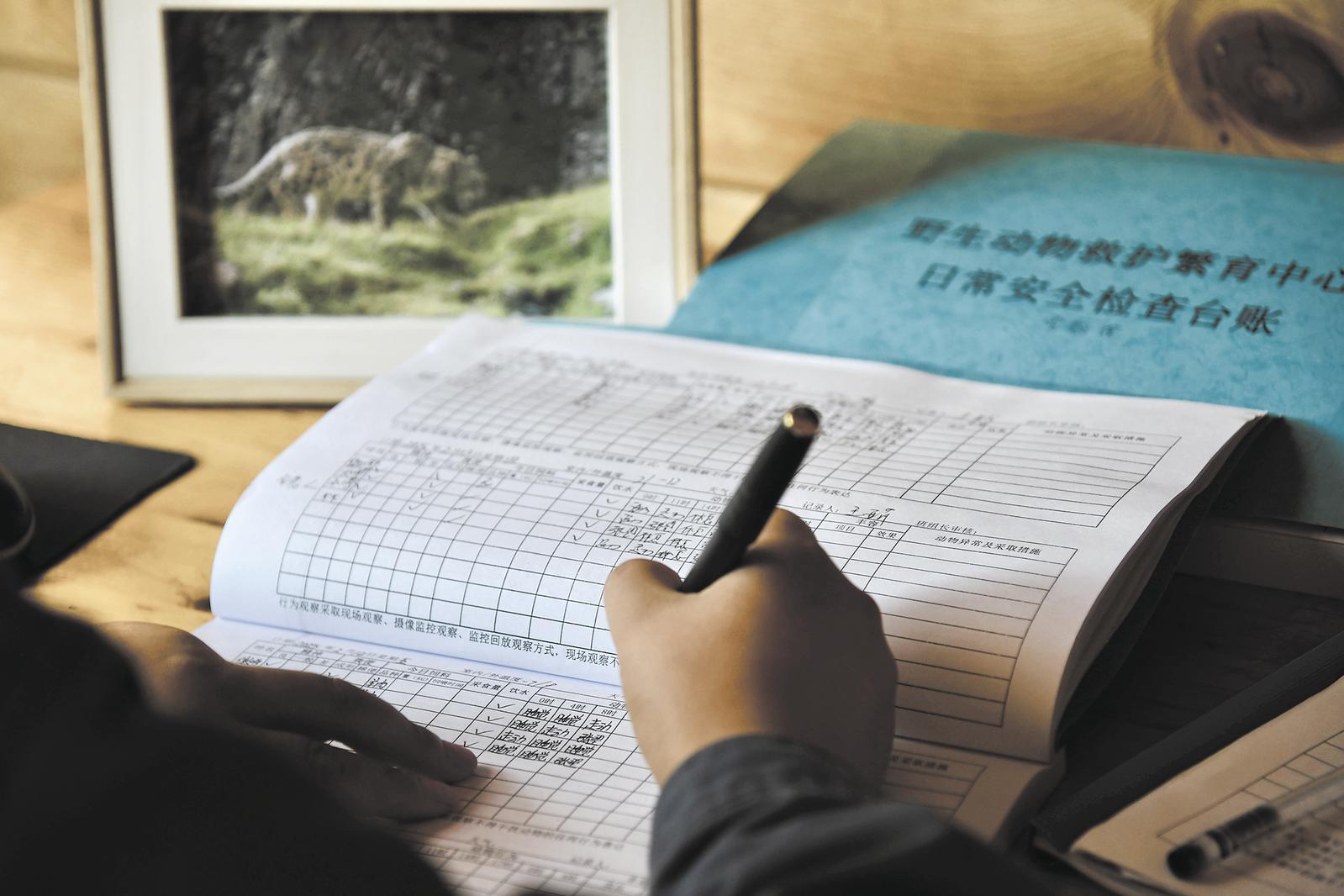 监控室内,观察完雪豹活动后的王亚萍正在详细地记录着傲雪上午的活动细节,这些珍贵的数据对于雪豹的保护与研究至关重要。“通过记录,我也很熟悉园内每一只雪豹的性格与喜好,从雪豹的一举一动中,掌握与它们交流的方式。”王亚萍一边记录一边骄傲地说。