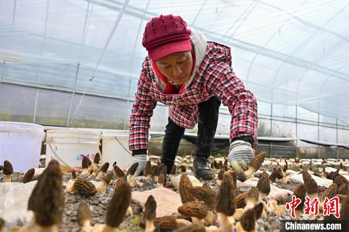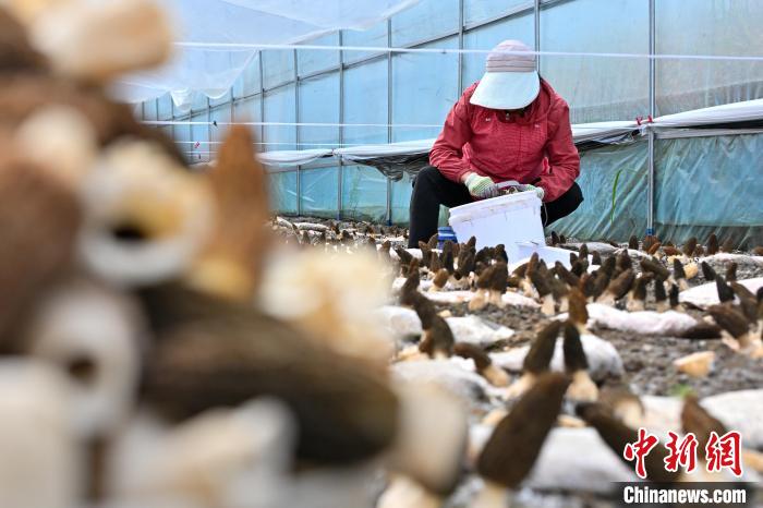 3月3日,云南省迪庆藏族自治州香格里拉市金江镇新建村种植的200余亩羊肚菌进入收获高峰期,农户们抢抓农时采收羊肚菌。