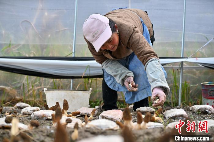 图为农户采收羊肚菌。中新社记者 李嘉娴 摄