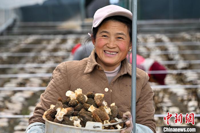 图为农户手捧采收的羊肚菌喜笑颜开。中新社记者 李嘉娴 摄