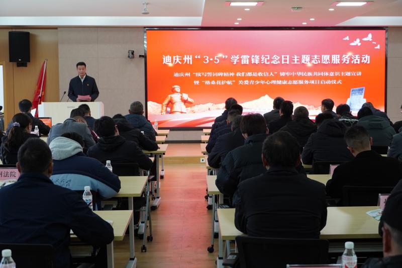 3月5日,迪庆州“续写誓词碑精神 我们都是收信人”铸牢中华民族共同体意识活动宣讲暨“格桑花护航”关爱青少年心理健康志愿服务项目启动仪式——“3·5”学雷锋纪念日主题志愿服务活动在香格里拉中学举行。