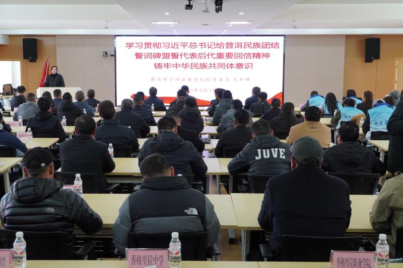 活动现场,普洱市宁洱县委党校老师吴卓嶧以“续写誓词碑精神 我们都是收信人”为主题,进行了铸牢中华民族共同体意识专题宣讲。吴老师从誓词碑的历史背景出发,深入浅出地解读了普洱民族团结誓词碑盟的动人故事,强调了铸牢中华民族共同体意识在当代社会的重要性。