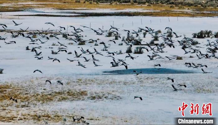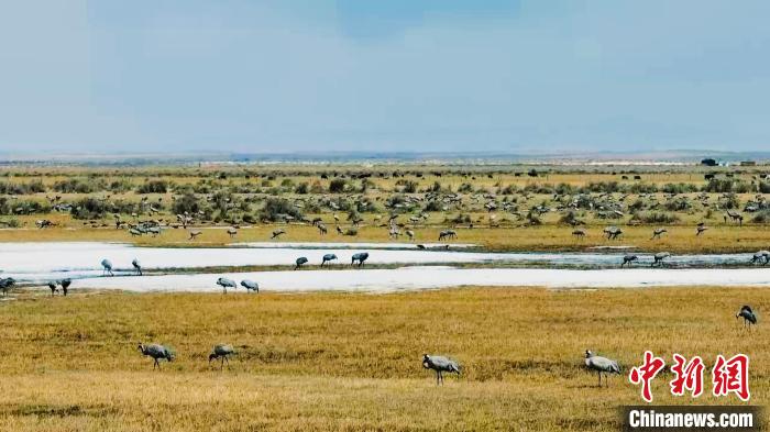 图为灰鹤等野生鸟类群。都兰县委宣传部 供图