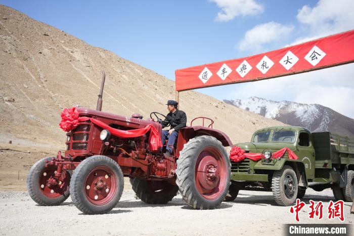 红色“55轮式拖拉机”名叫“铁牛”,前杠上写着“出生年月”:1979年10月。微电影《五十七公里》中,张天文载着戏中主持修路的陶书记,在牧民们的欢呼雀跃中,将它开进通车典礼现场。