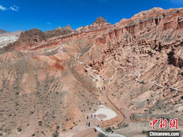 图为游客在地质公园内参观。(无人机照片)中新社记者 马铭言 摄