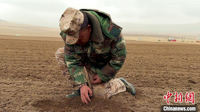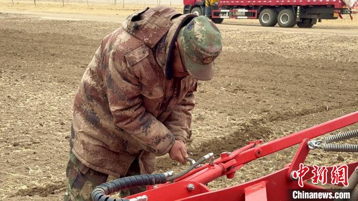 图为工作人员检修播种器械。陈宗淇 摄